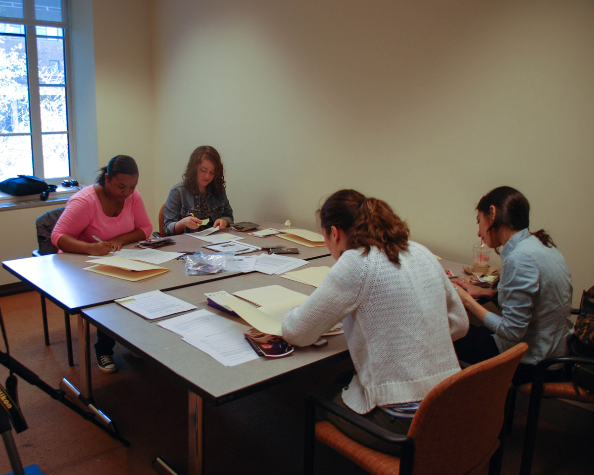 Kristy and classmates getting damaged photos ready.